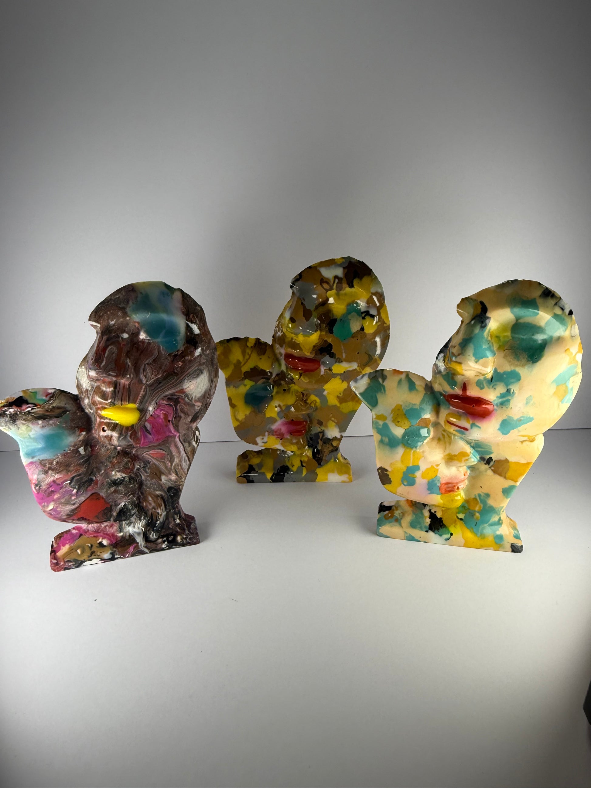 These abstract face figures are made by melting down waste and failed 3D prints from Galaxy Layers, giving them a second life.
