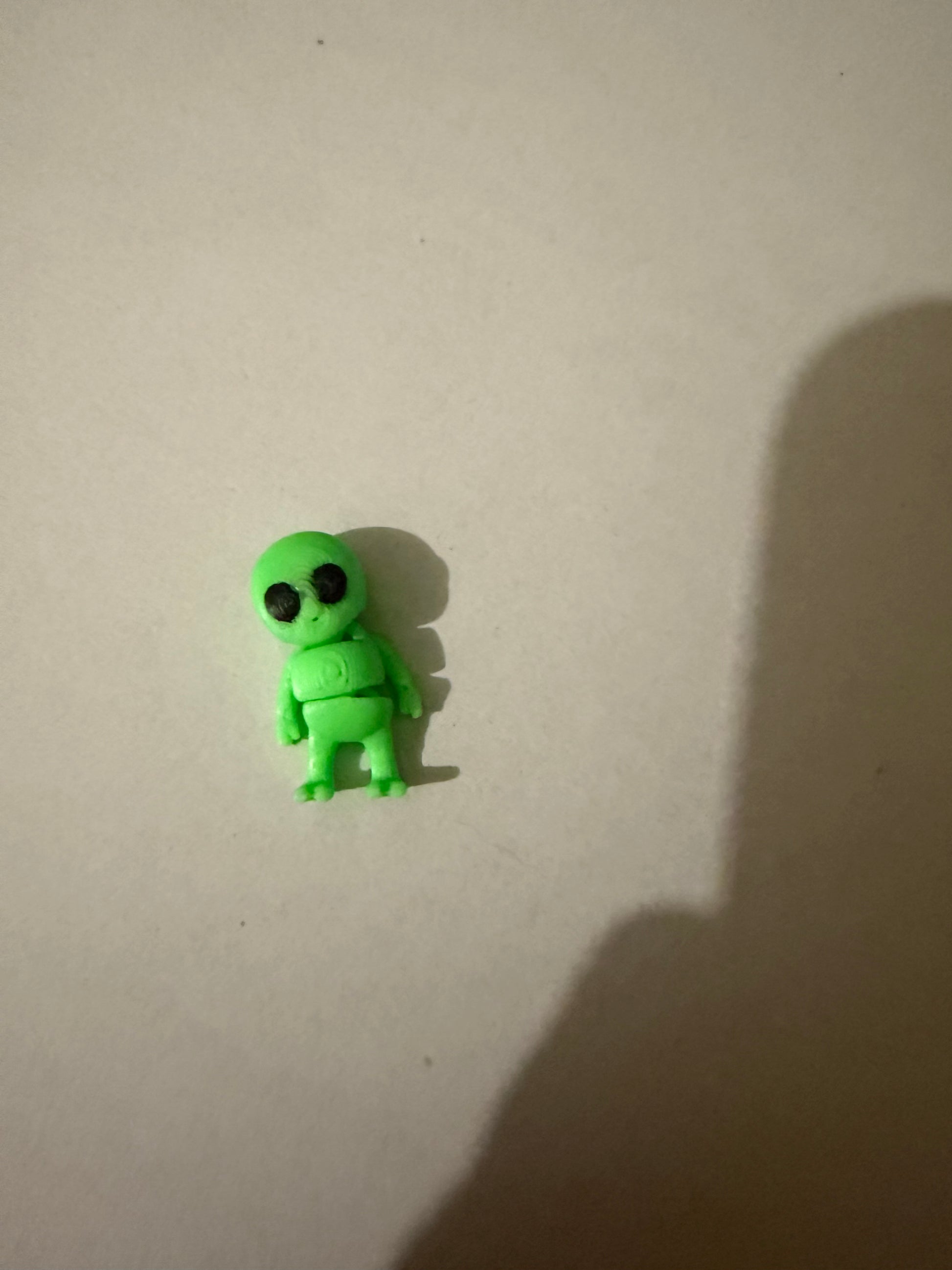 Mysterious, mischievous, and out of this world — the Alien Cosmos Critter is a tiny extraterrestrial explorer with big personality! Standing at around 2.5 cm tall, this little being is fully articulated, featuring smooth joints that let it wave, pose, and wiggle with cosmic charm.
