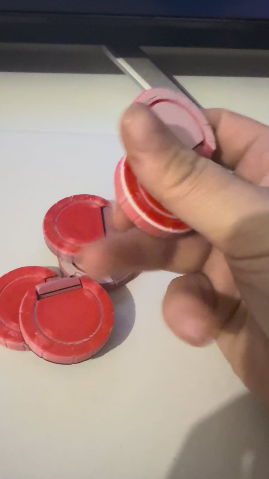 Bring a touch of Vegas flair to your fingertips with the Casino Chip Fidget! Designed for smooth motion and satisfying spins, this clever fidget features two casino chip–shaped pieces joined together, letting you flip, spin, and roll them effortlessly in your hand — just like the real thing.