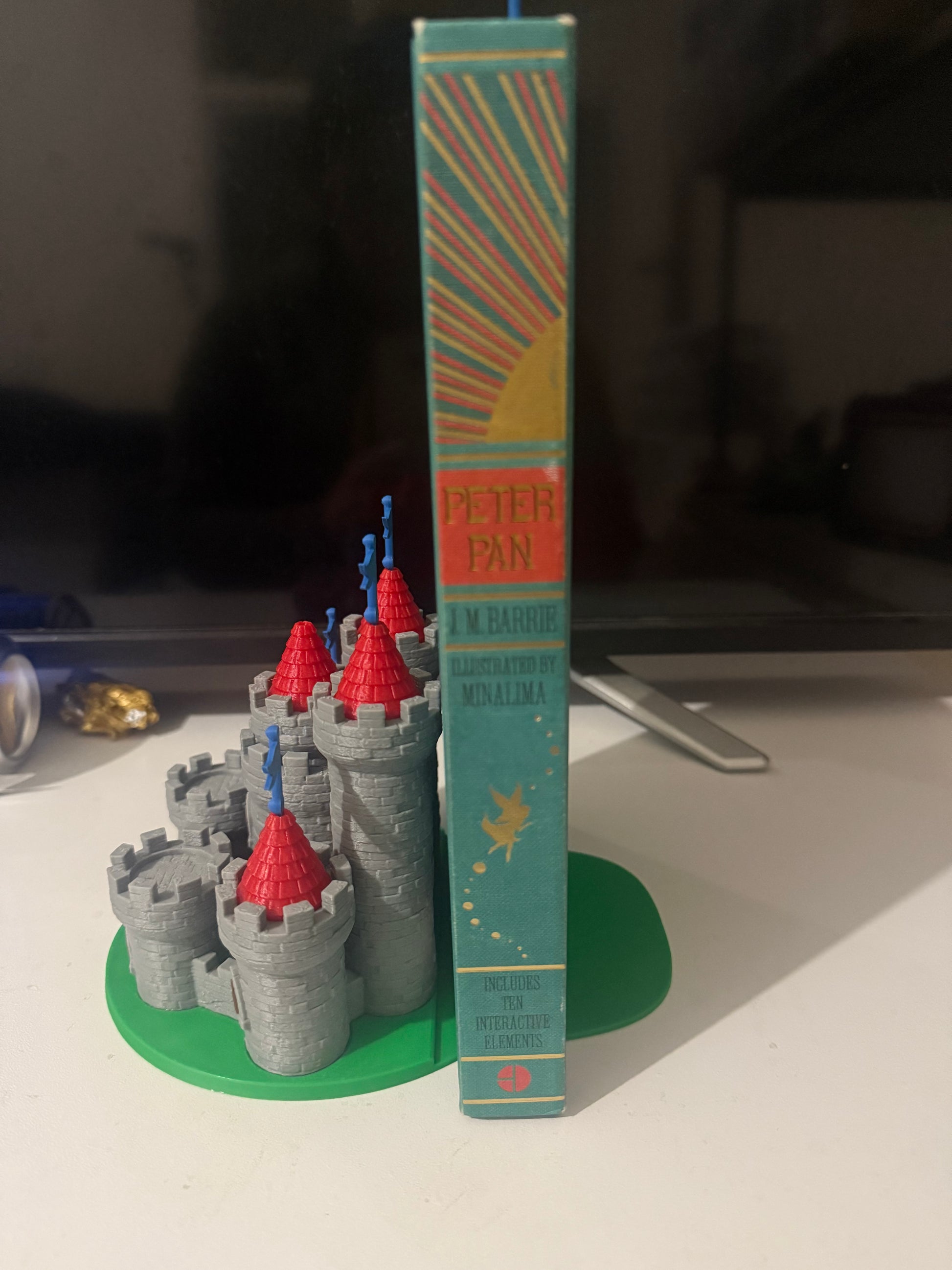 Each bookend is 3D printed layer by layer with intricate stone textures, turret detailing, and sturdy construction to keep your books standing tall. The flag bookmarks slot neatly into the top towers — remove one whenever you need to mark your place, then return it to the castle when your reading quest is complete. 🏴