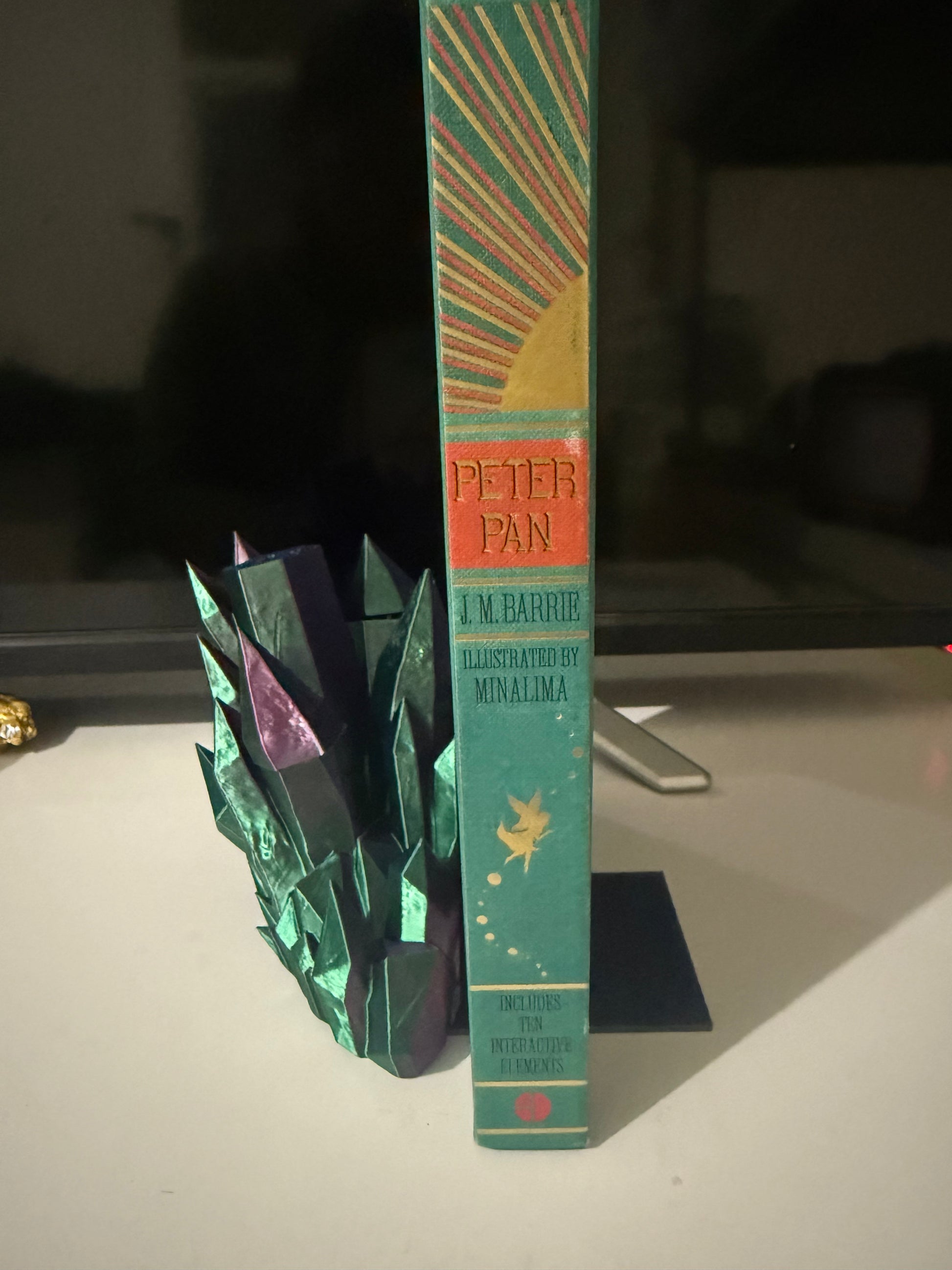 Each bookend is 3D printed layer by layer with intricate crystal texture and sturdy weight, designed to hold your favourite books in place while adding a magical touch to your space. When inspiration strikes, simply lift out a crystal tip to mark your page — a perfect blend of practicality and design.