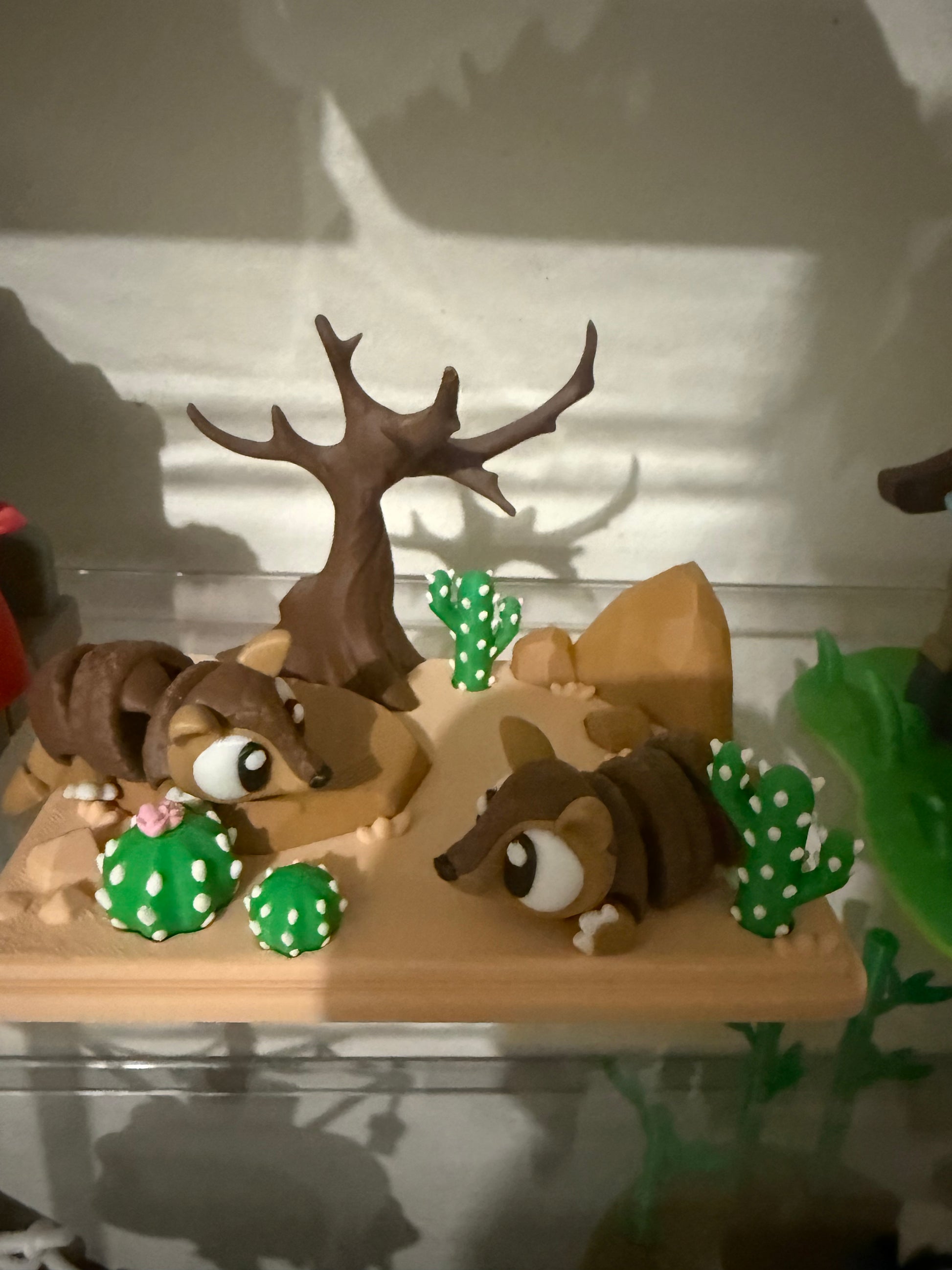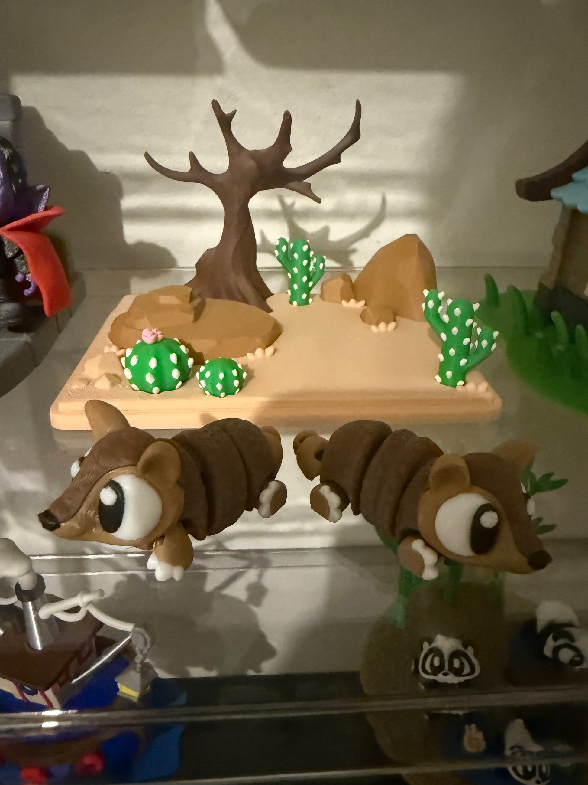 This desert-inspired display features two articulated Armadillos, each ready to scurry, curl, and explore their sandy hideaway. With smooth, flexible motion and detailed shell textures, they’re the perfect mix of cute and curious — a true reflection of life in the dunes.