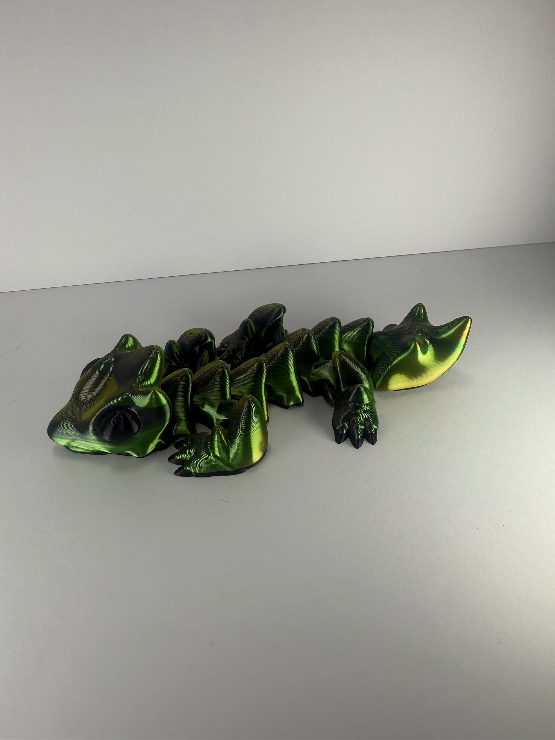 This striking articulated dragon is approx. 19cm long and printed in shimmering tri-coloured filament, giving it a fiery, ever-changing appearance that looks different from every angle. Perfect for collectors, fantasy lovers, or anyone who wants a bold display piece.