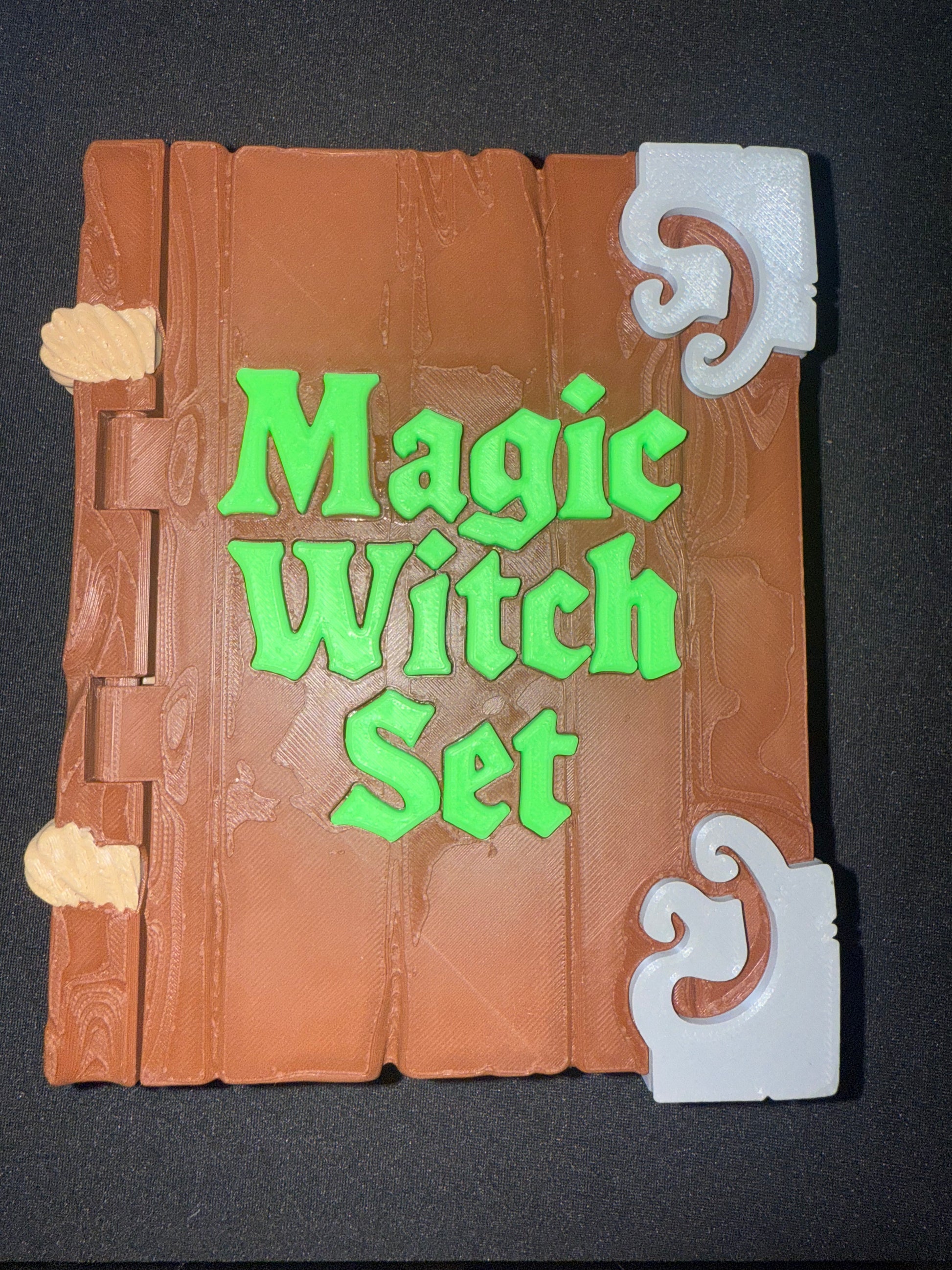The Witch Set brings spellbinding detail and charm to your collection, featuring a fully articulated Witch and a selection of mystical accessories — all neatly stored inside a book-style container that opens to reveal dedicated spots for every piece.