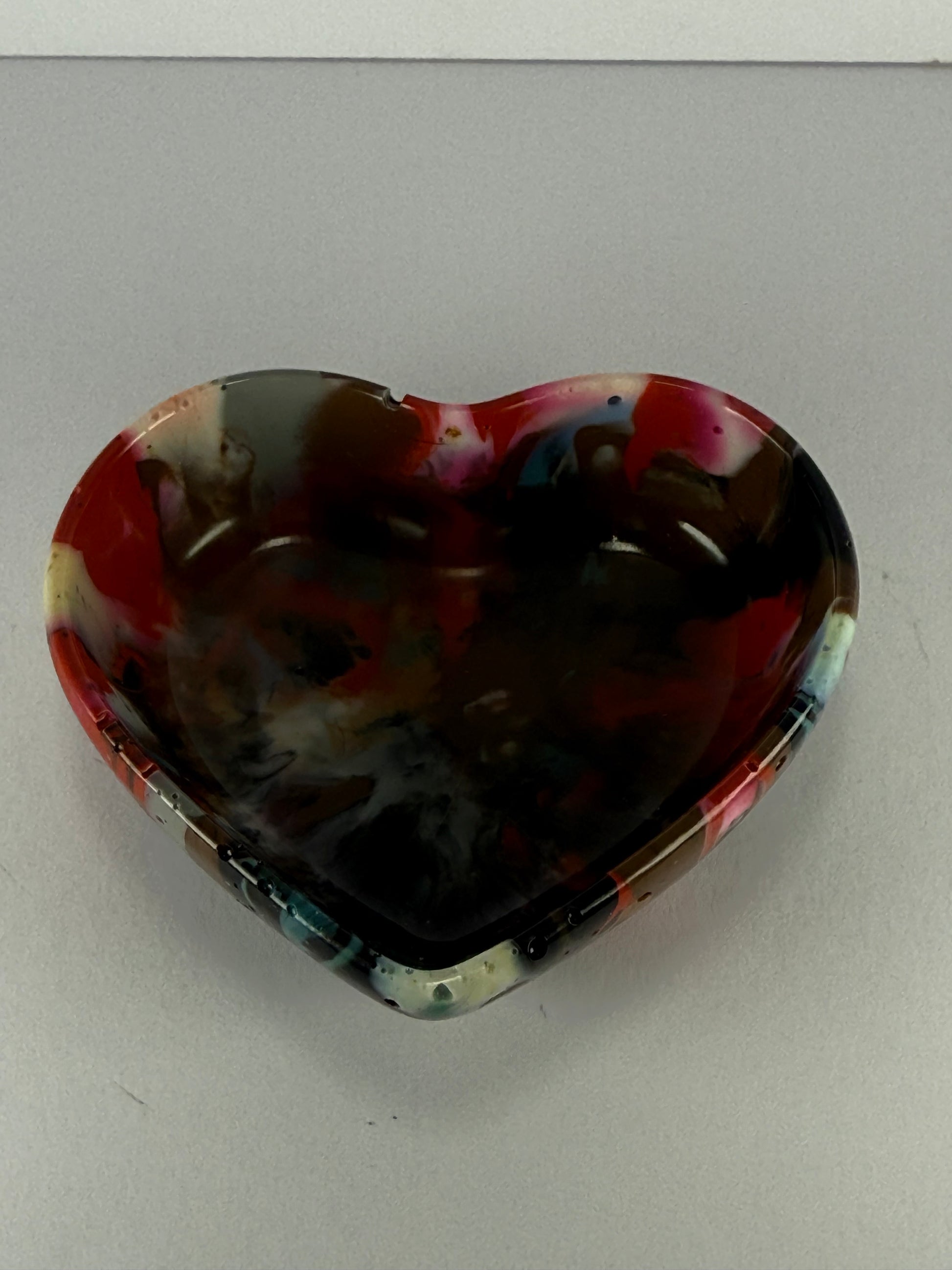 These heart-shaped catch-all trays are made by melting down waste and failed 3D prints from Galaxy Layers, giving them a second life.