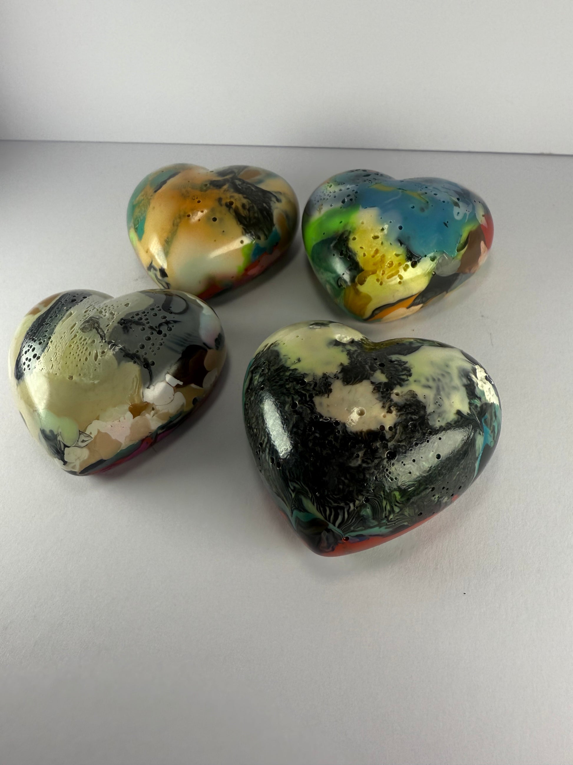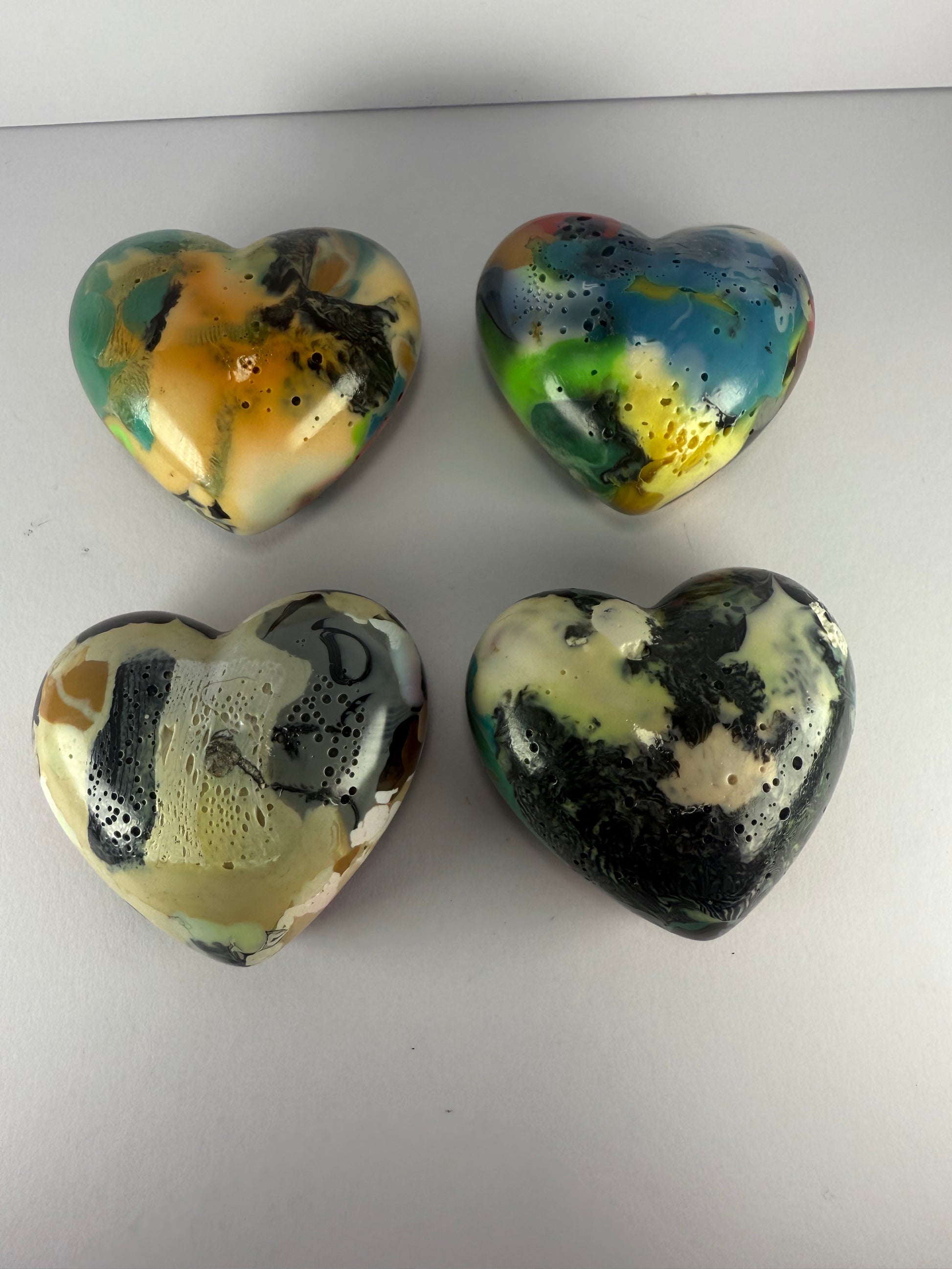 These decorative hearts are made by melting down waste and failed 3D prints from Galaxy Layers, giving them a second life.