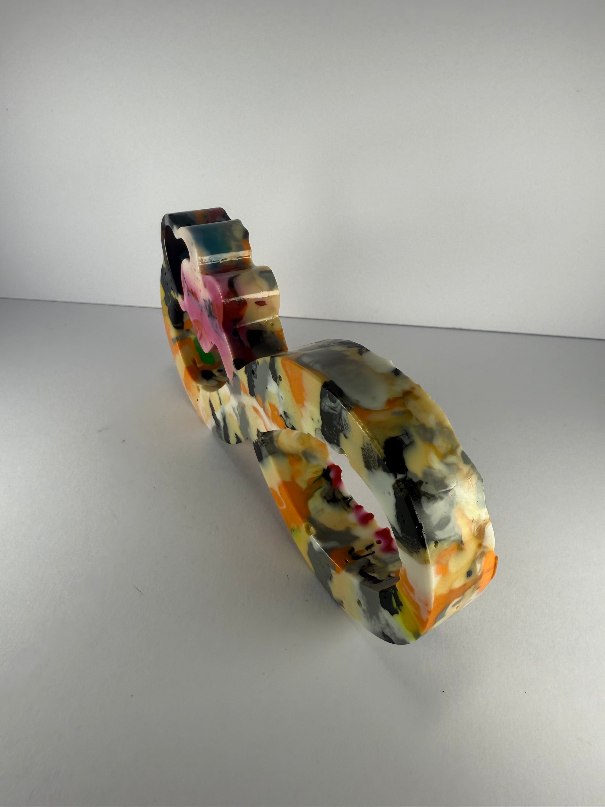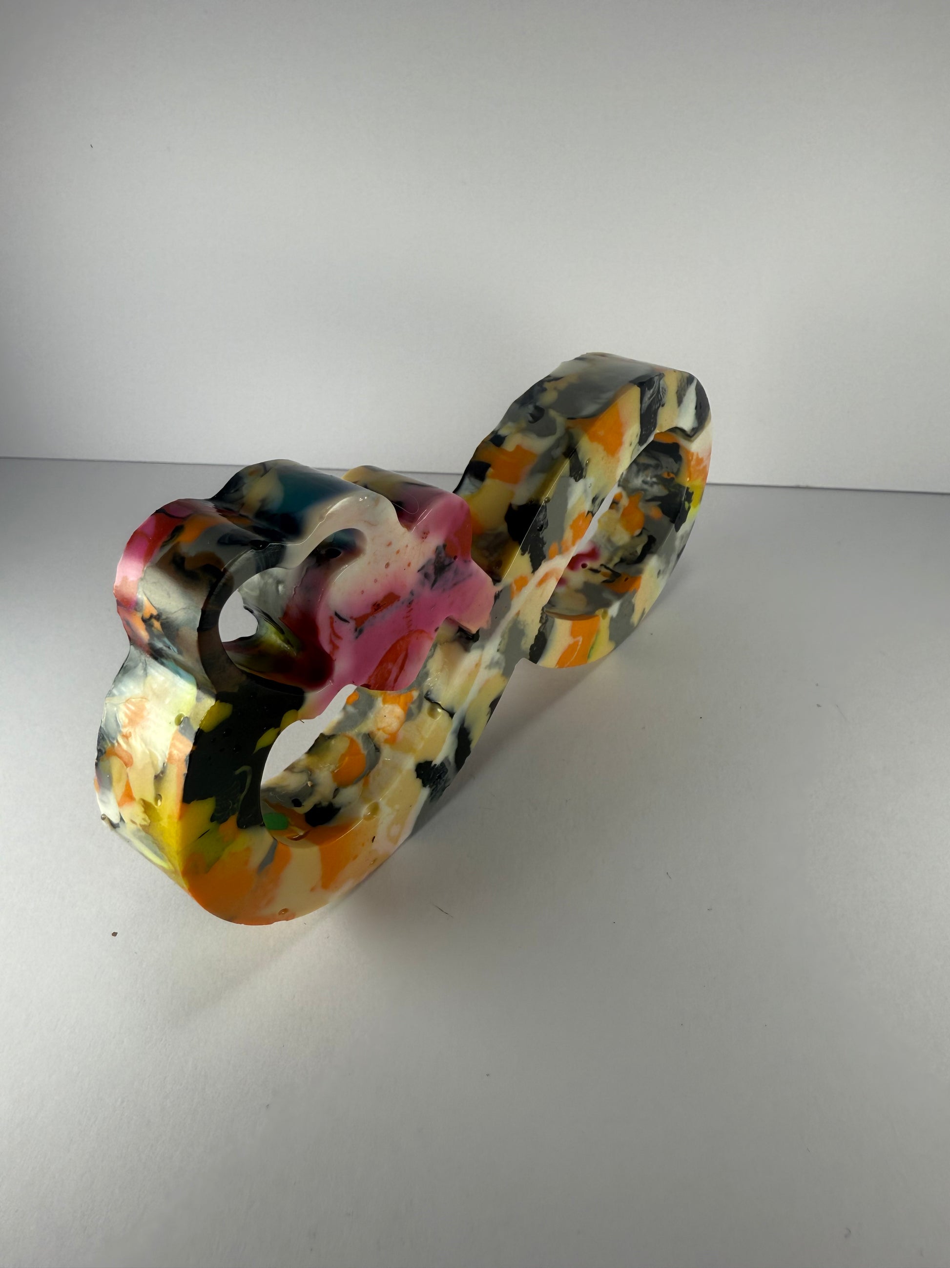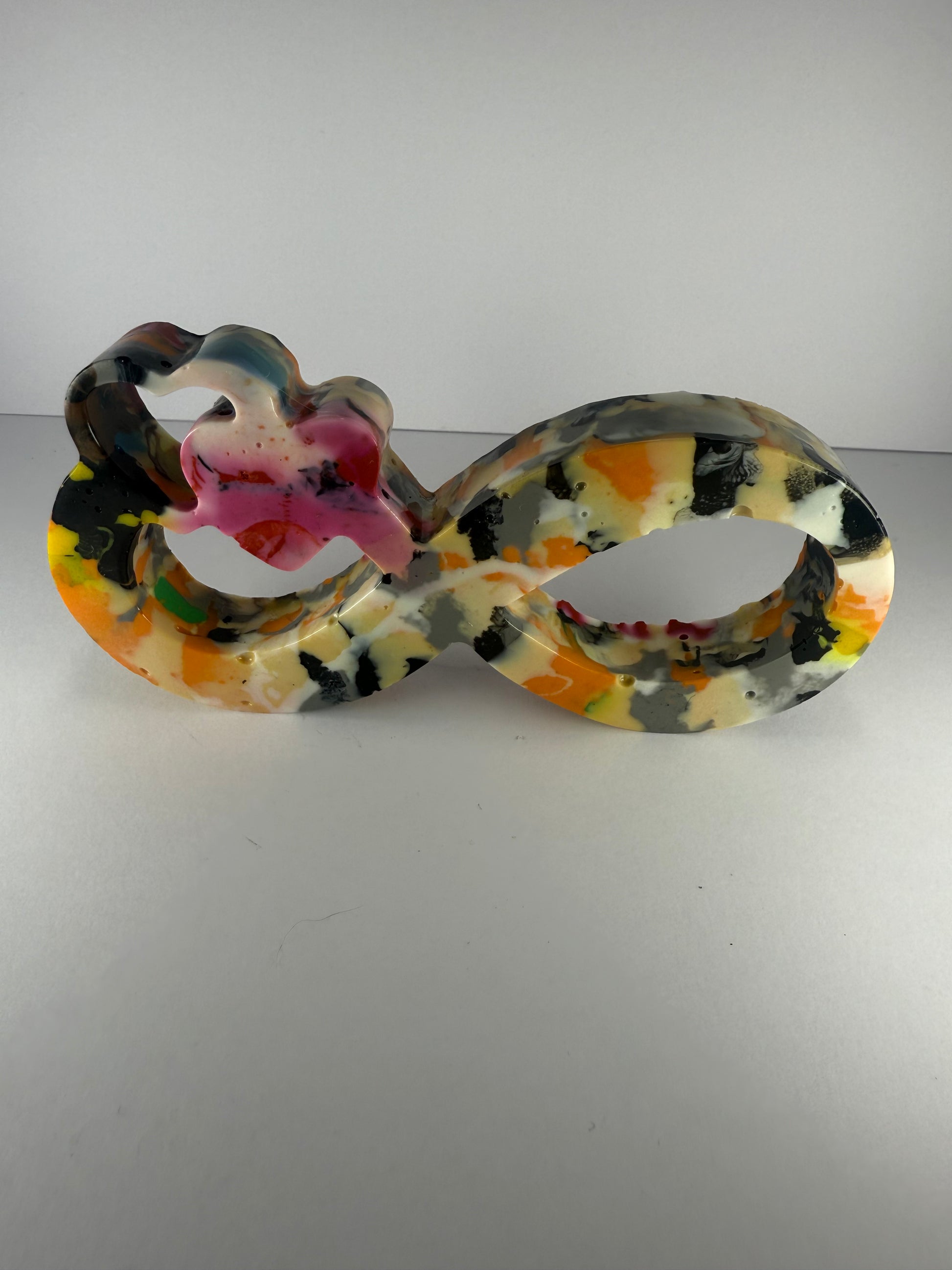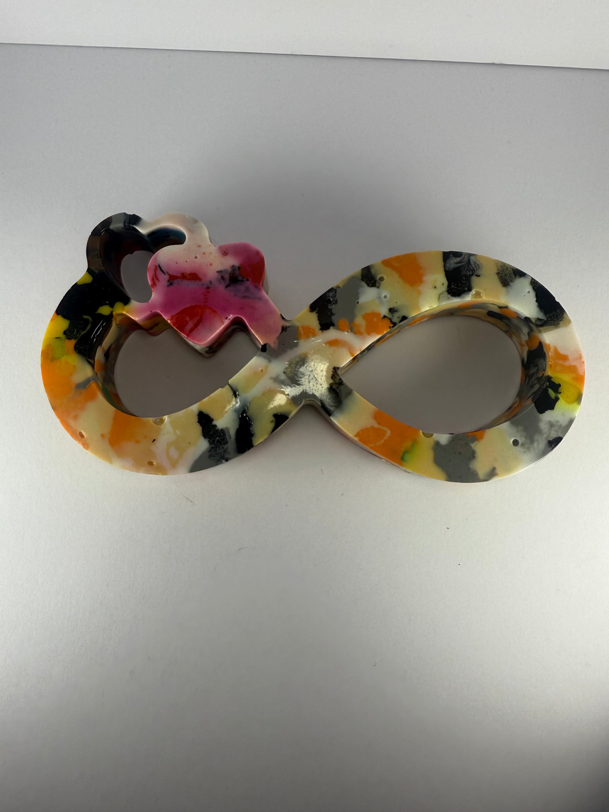 This infinity symbol with hearts is made by melting down waste and failed 3D prints from Galaxy Layers, giving it a second life.