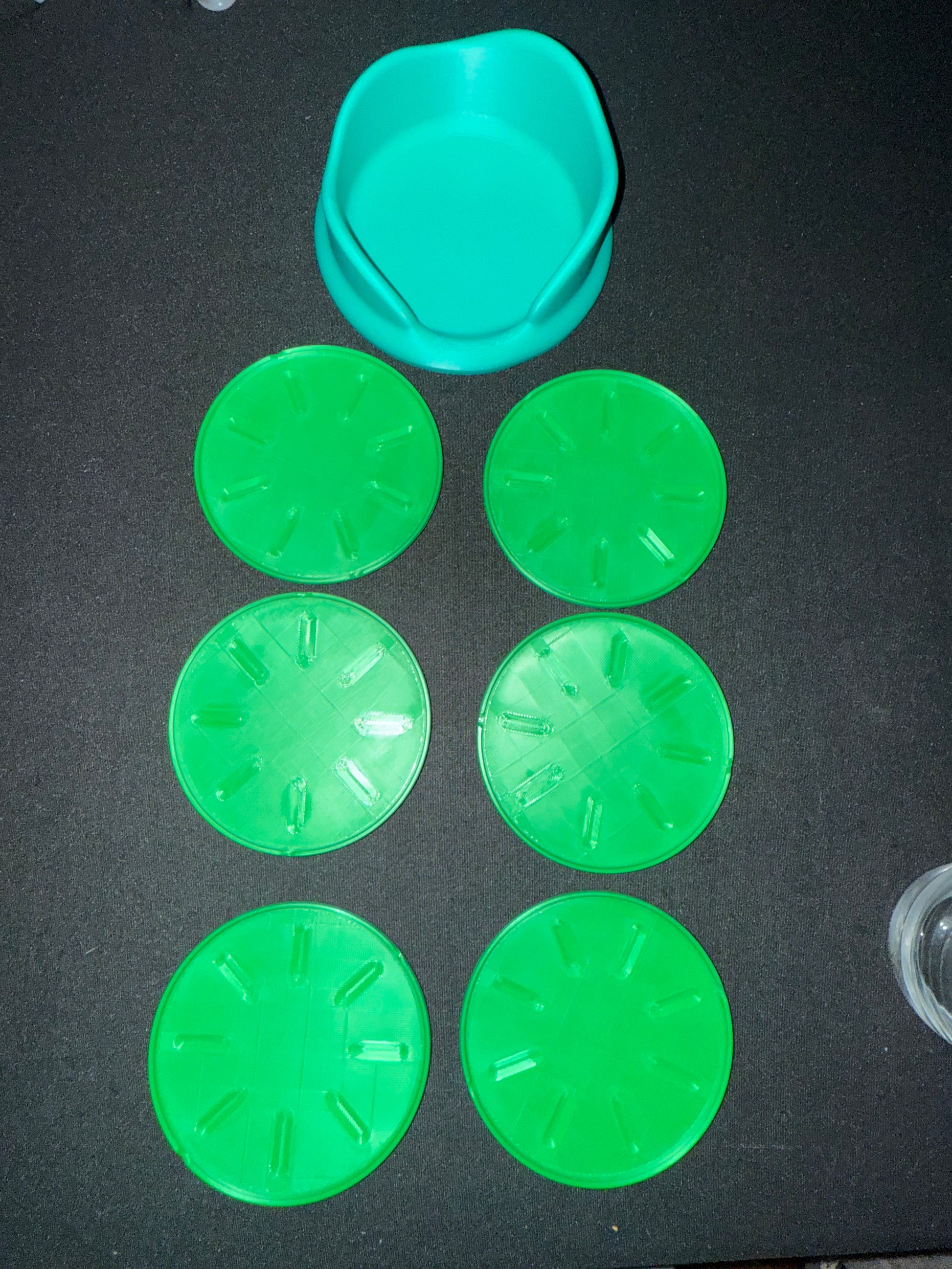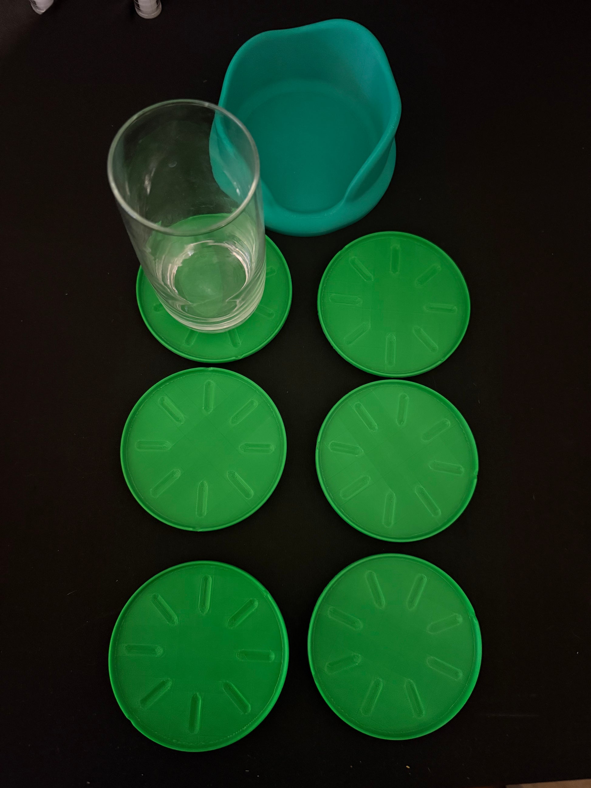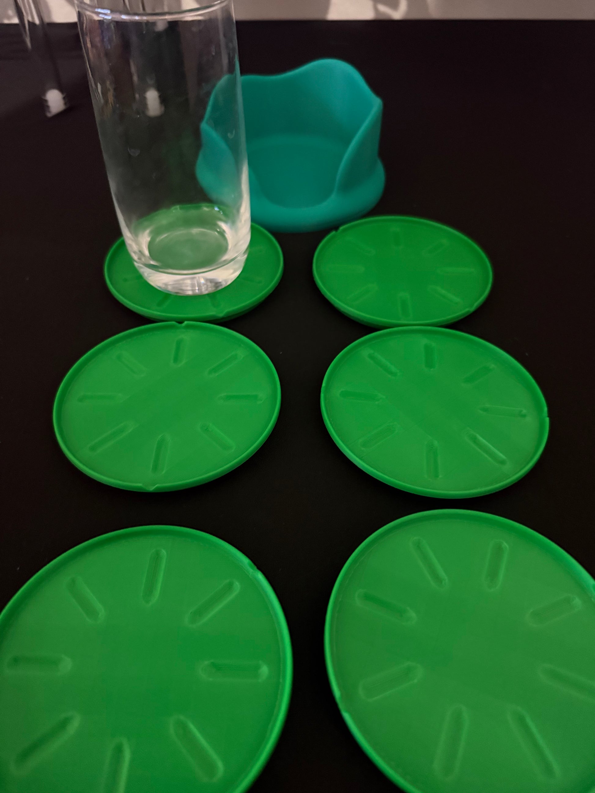 Printed in durable, lightweight PLA and finished with smooth detail, they’re practical and pretty. The matching holder keeps your six coasters neatly stacked and ready for your next drink break.