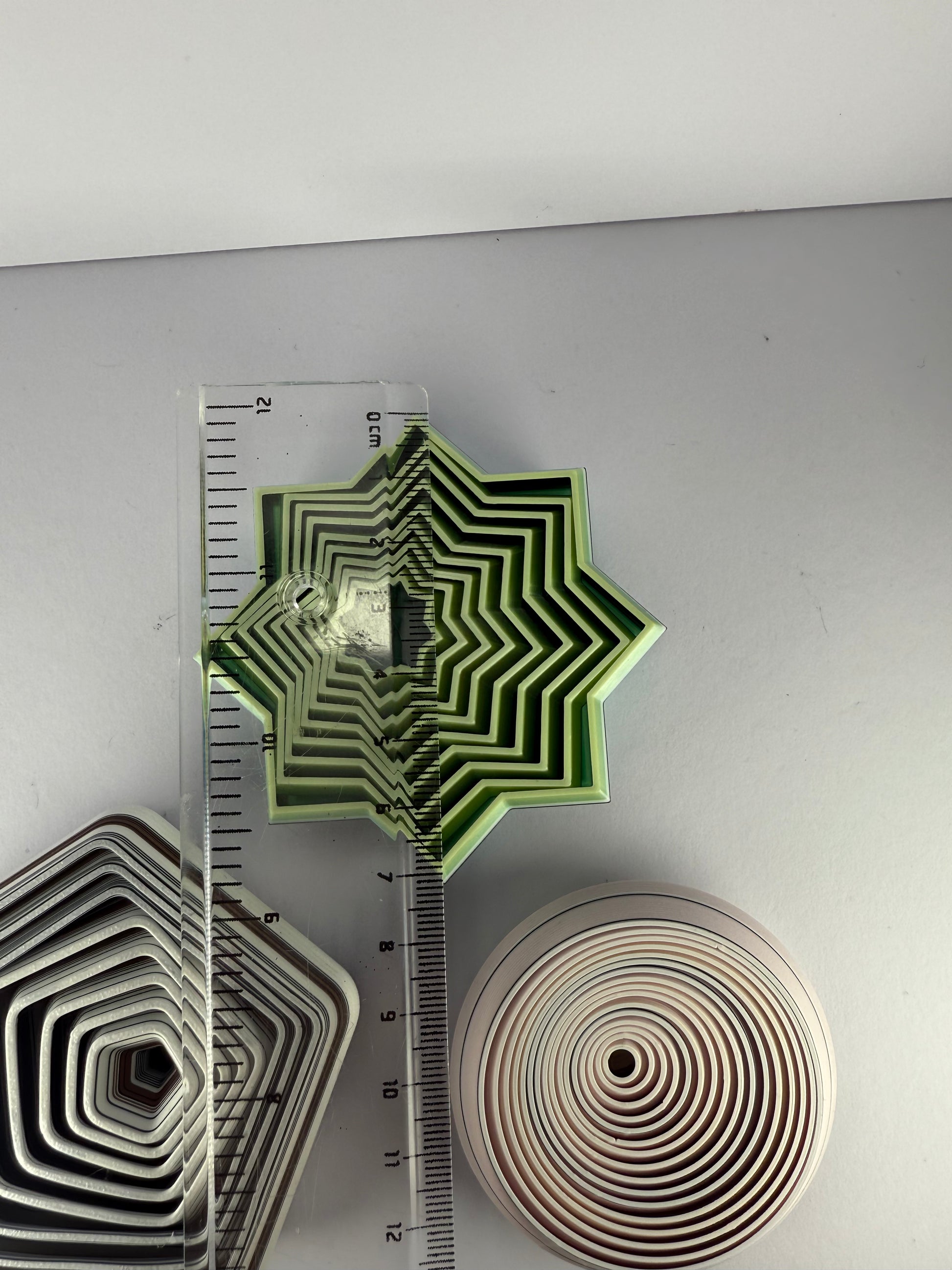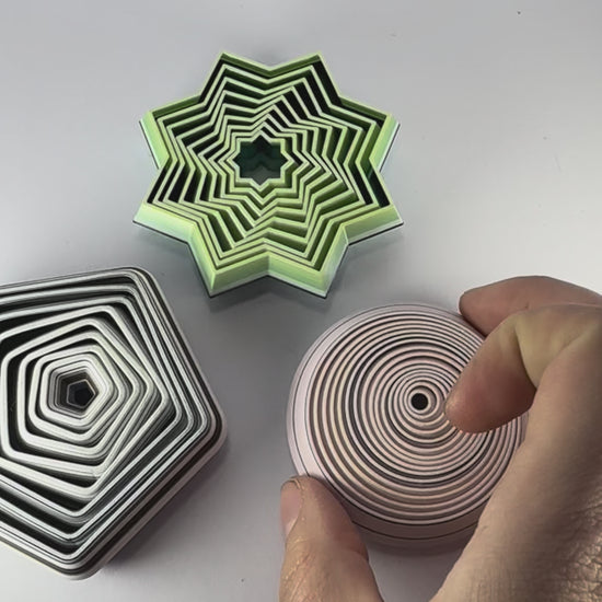 Keep your hands busy with the Moving Shapes Fidget! This clever desk toy is designed to shift and move in your hands for a satisfying, stress-relieving motion. Each piece is 3D printed in purge colours, so every one is unique and one-of-a-kind.