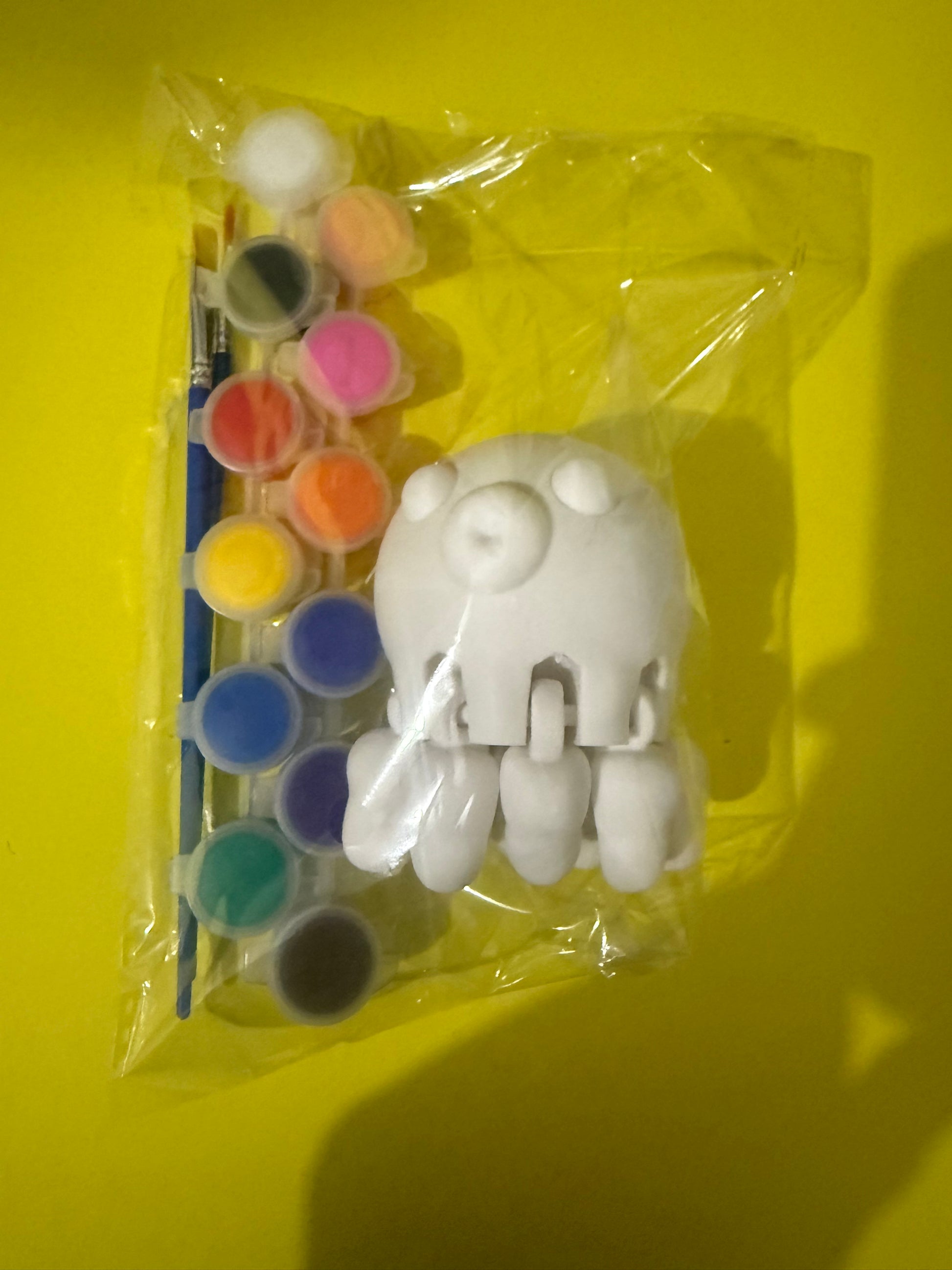 - Includes 1 large (10–15 cm) white 3D-printed Octopus, 12 acrylic paints, and 2 brushes