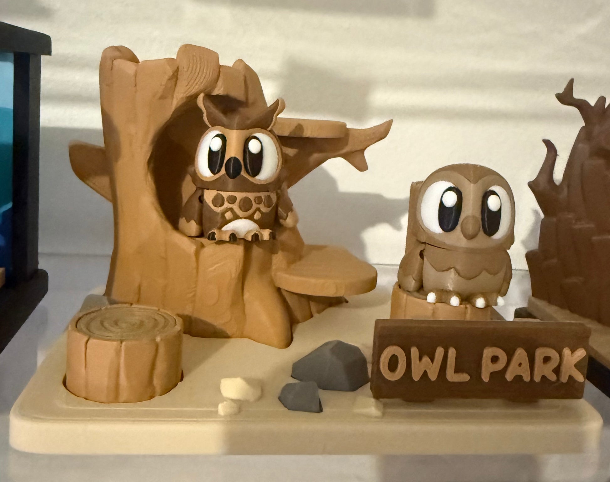 The Owl Park Habitat makes a perfect display piece or cozy resting spot for your feathered duo, blending natural textures with Galaxy Layers detail.