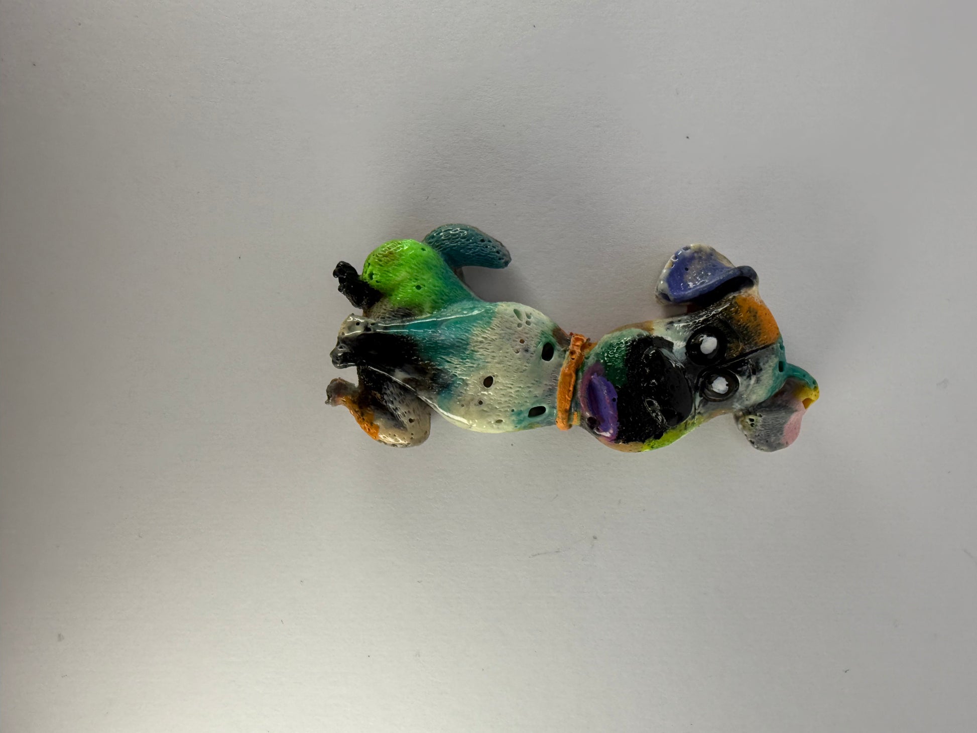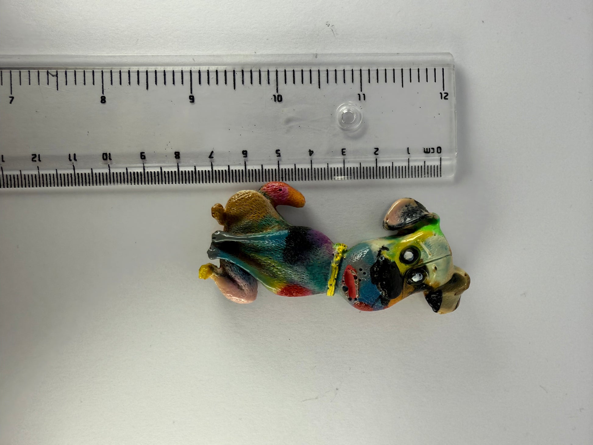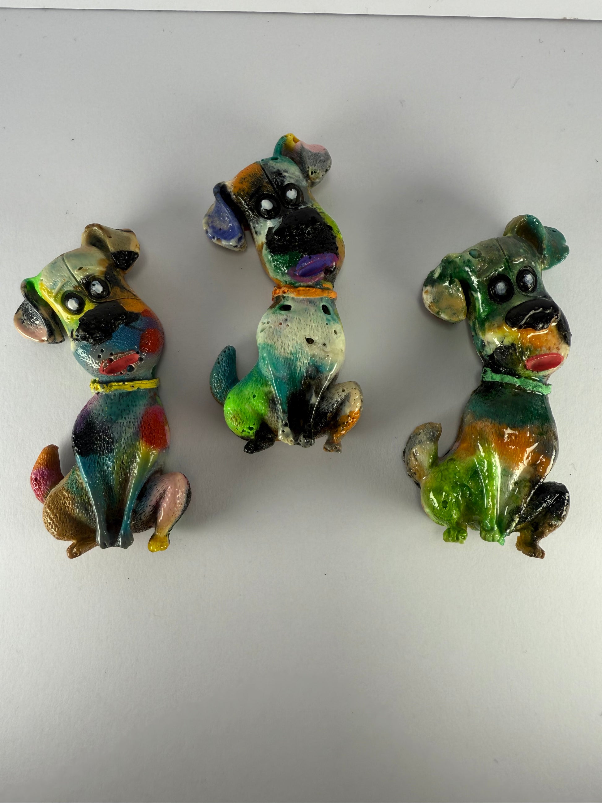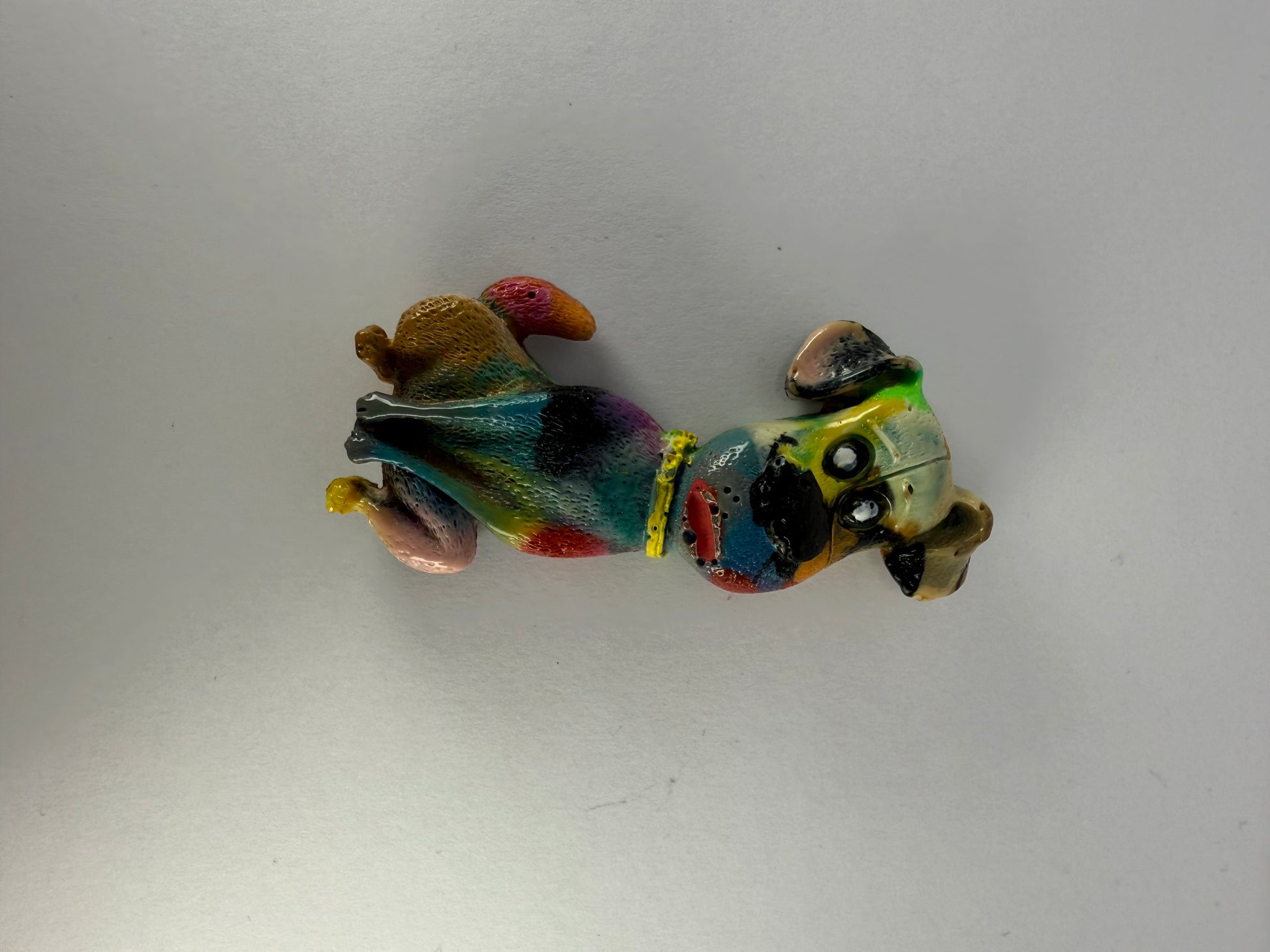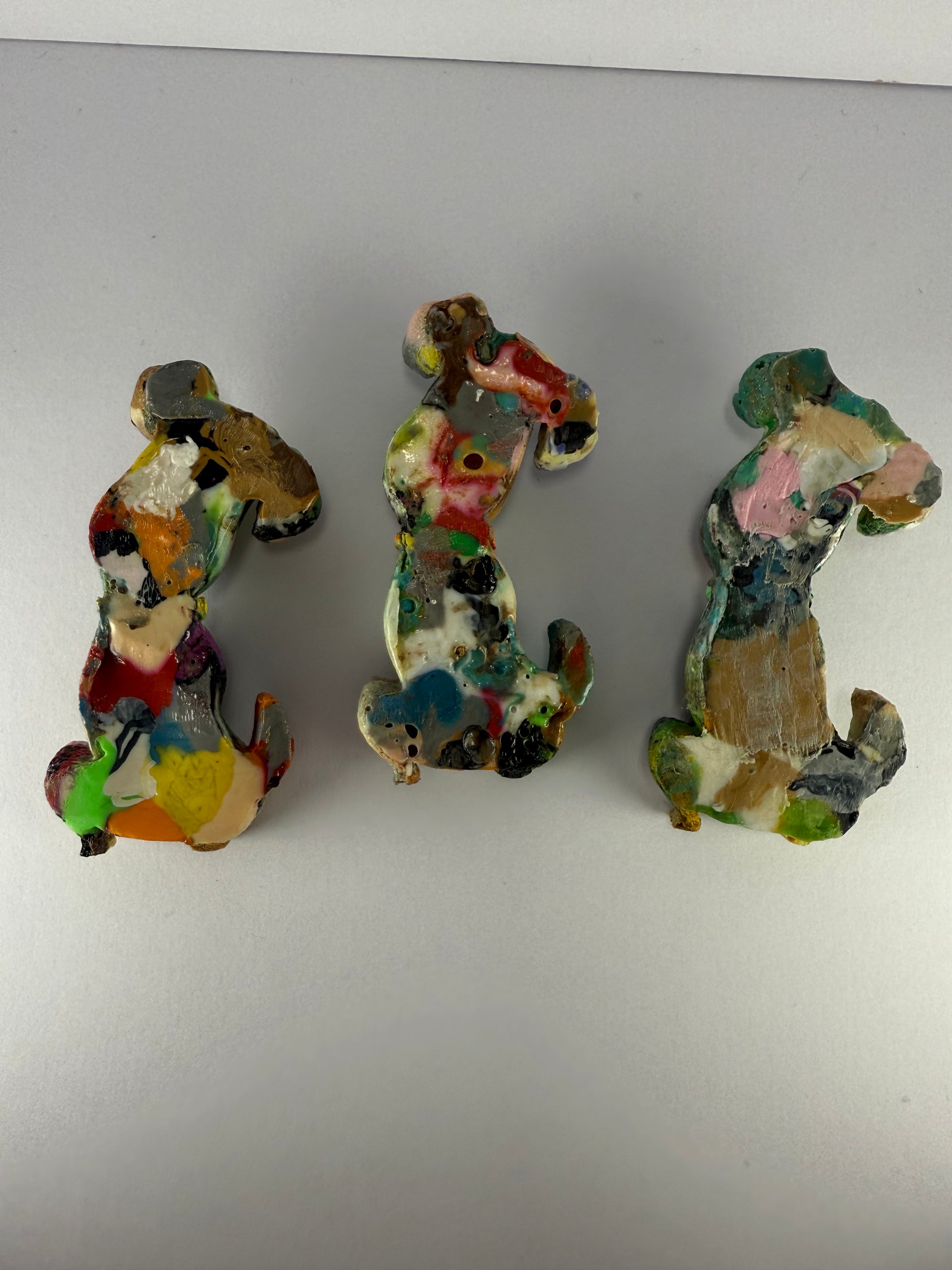 These small dog figures are made by melting down waste and failed 3D prints from Galaxy Layers, giving each one a second life.