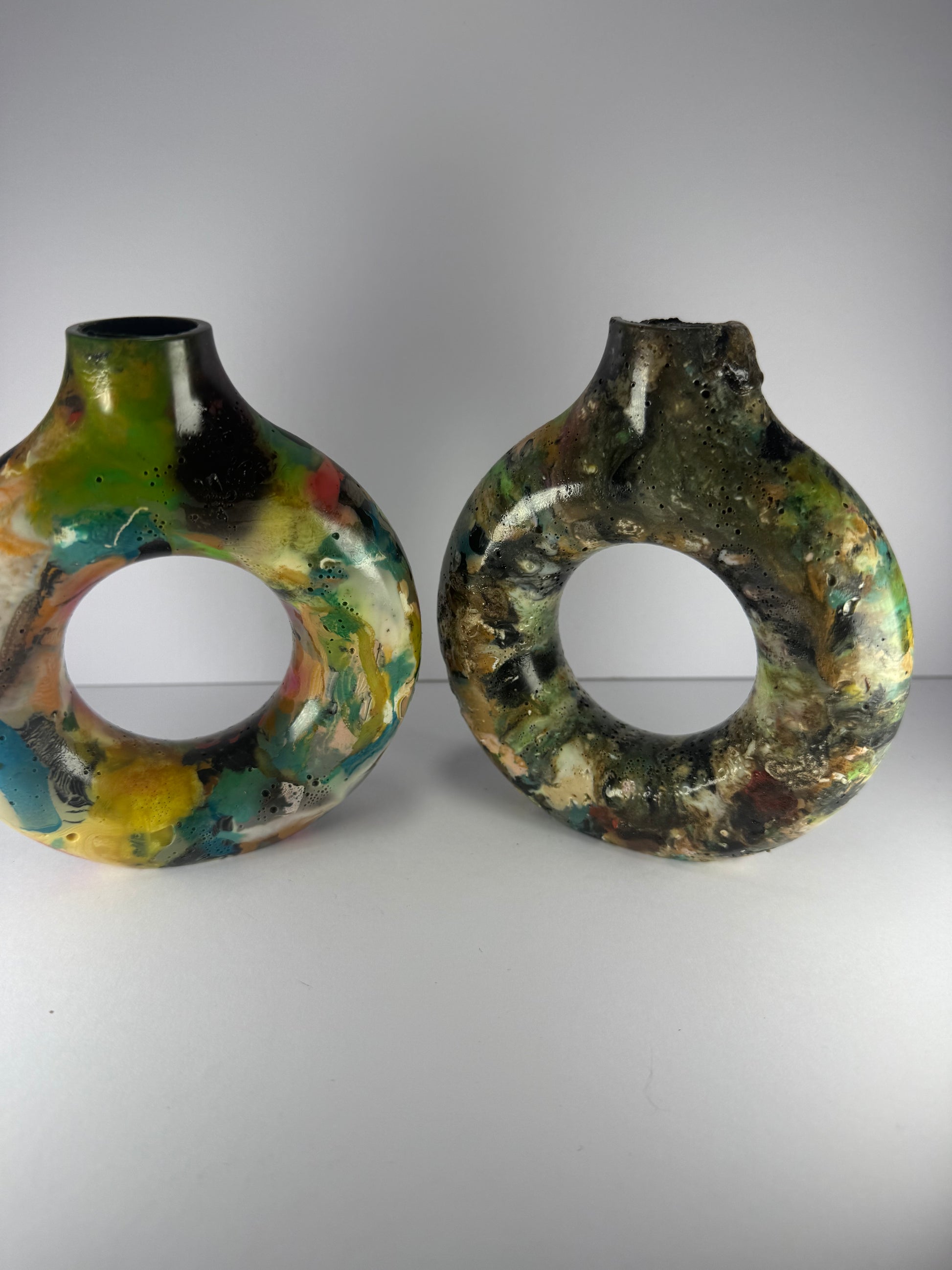 These vases are made by melting down waste and failed 3D prints from Galaxy Layers, giving them a second life.